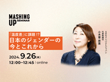 9月26日(木)12時より、MASHING UP 無料セミナー Vol.15「『温度差』に課題!? 日本のジェンダーの今とこれから」をオンラインにて開催します。