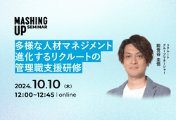 10月10日(木)12時より、MASHING UP 無料セミナー Vol.16「多様な人材マネジメント。進化するリクルートの管理職支援研修」をオンラインにて開催します。