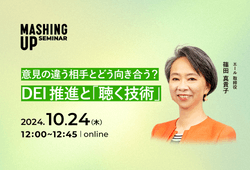 10月24日(木)12時より、MASHING UP 無料セミナー Vol.17「意見の違う相手とどう向き合う?DEI推進と『聴く技術』」をオンラインにて開催します。