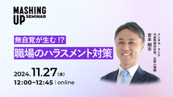 11月27日(水)12時より、MASHING UP 無料セミナー Vol.19「無自覚が生む!?職場のハラスメント対策」をオンラインにて開催します。
