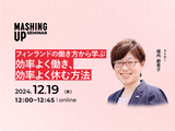 12月19日(木)12時より、MASHING UP 無料セミナー Vol.20「フィンランドの働き方から学ぶ。効率よく働き、効率よく休む方法」をオンラインにて開催します。